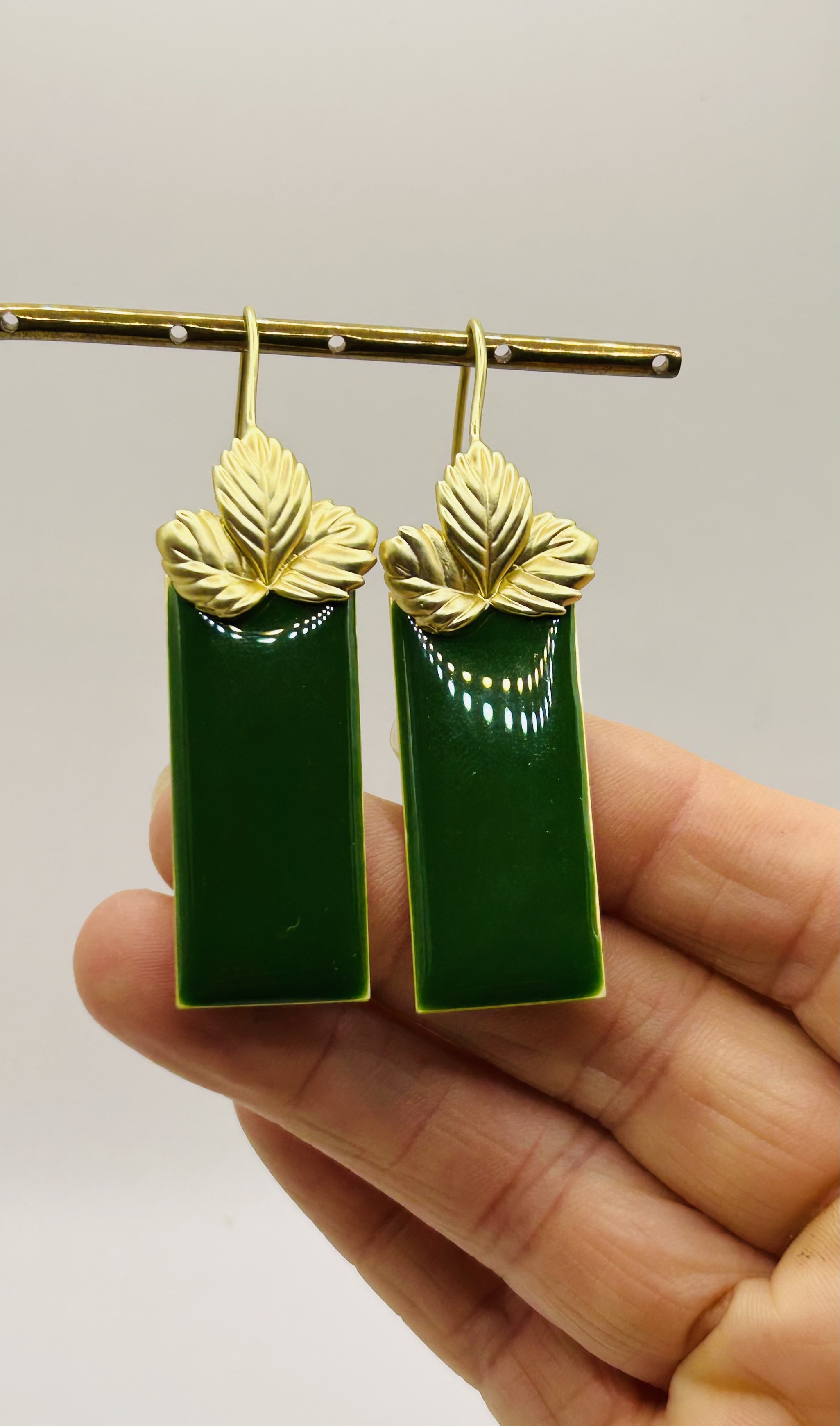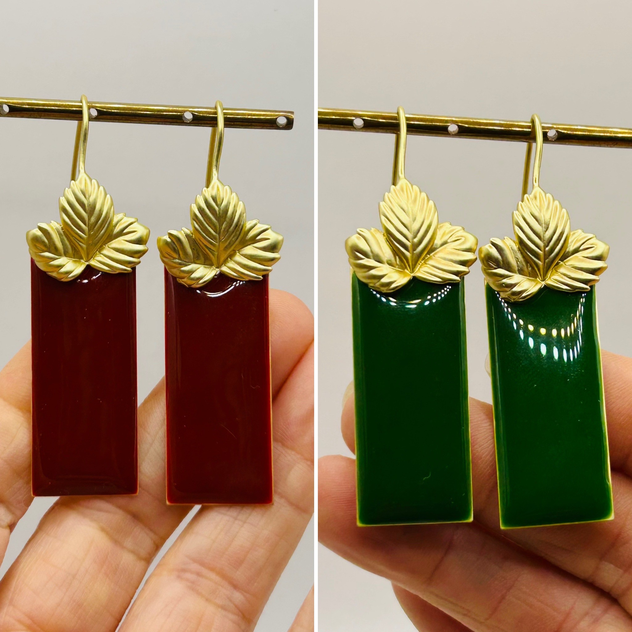 Feuille dorée et rectangle vert ou bordeaux